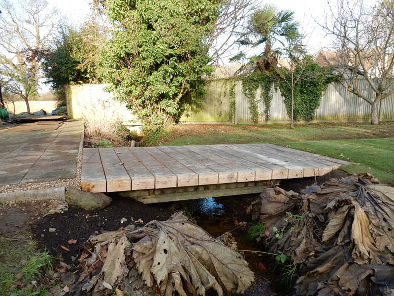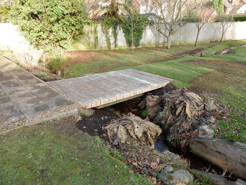 A water retentive soil type and locality of this garden in Fleet, Hampshire caused water logging and flooding during persistent rain fall. A stream also run below and through the garden.