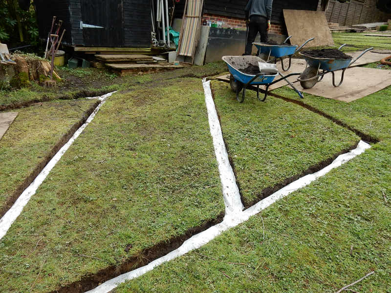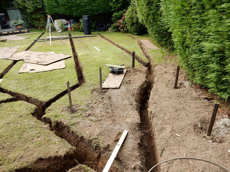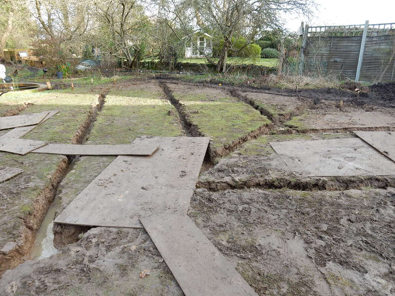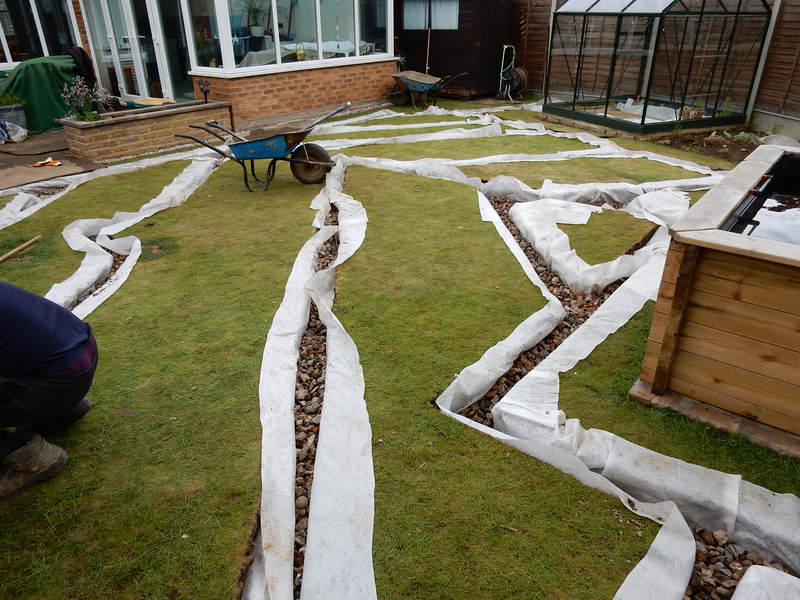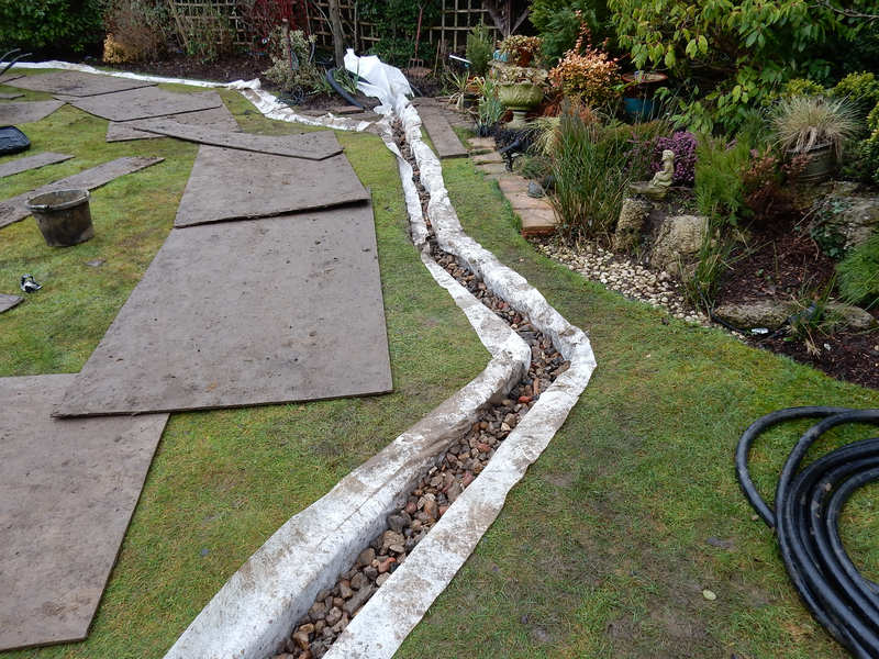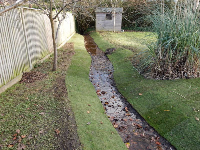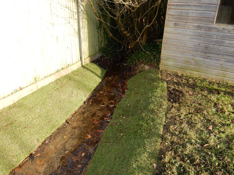 Three main drainage trenches were strategically located within the lawn areas to catch run off from the higher ground beyond the property and diverted to lower areas within the garden away from the house.