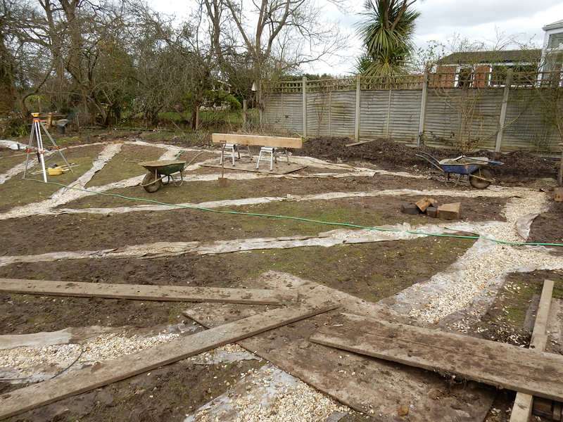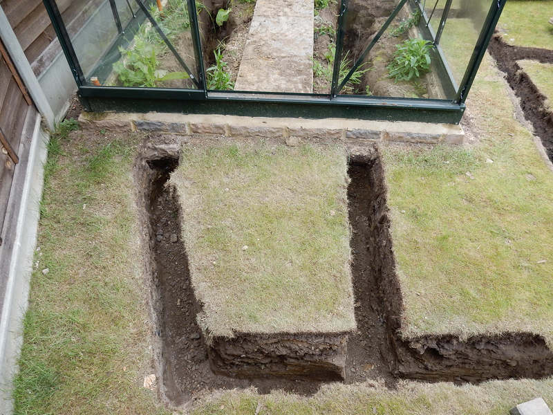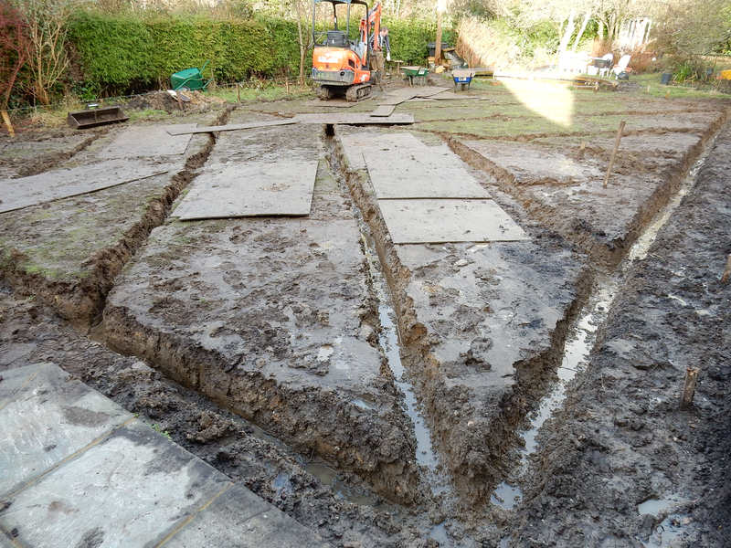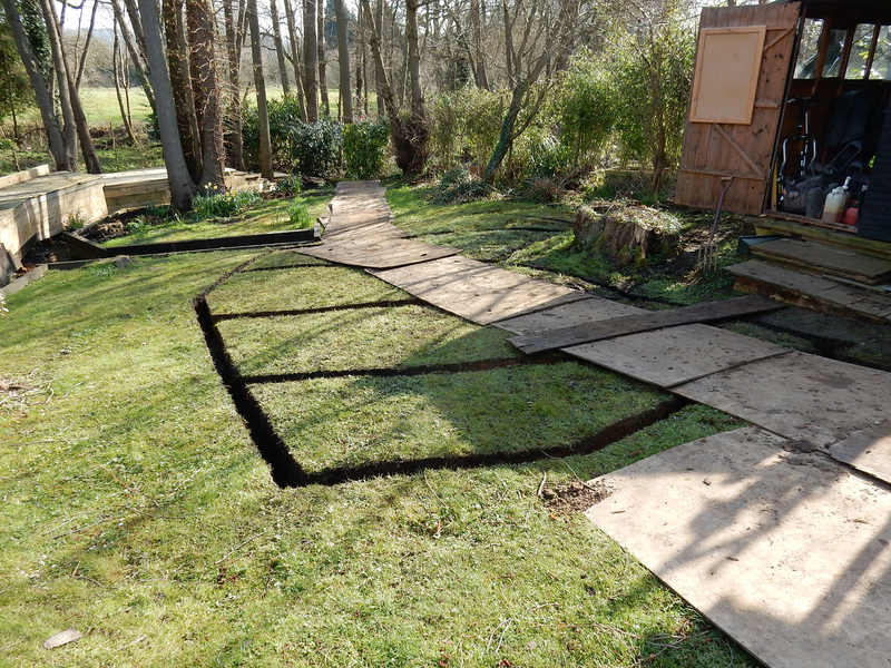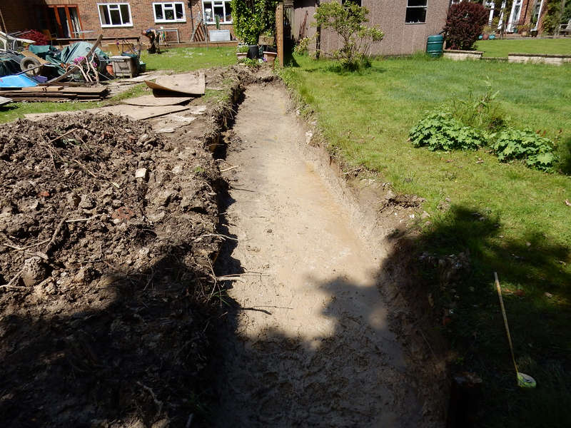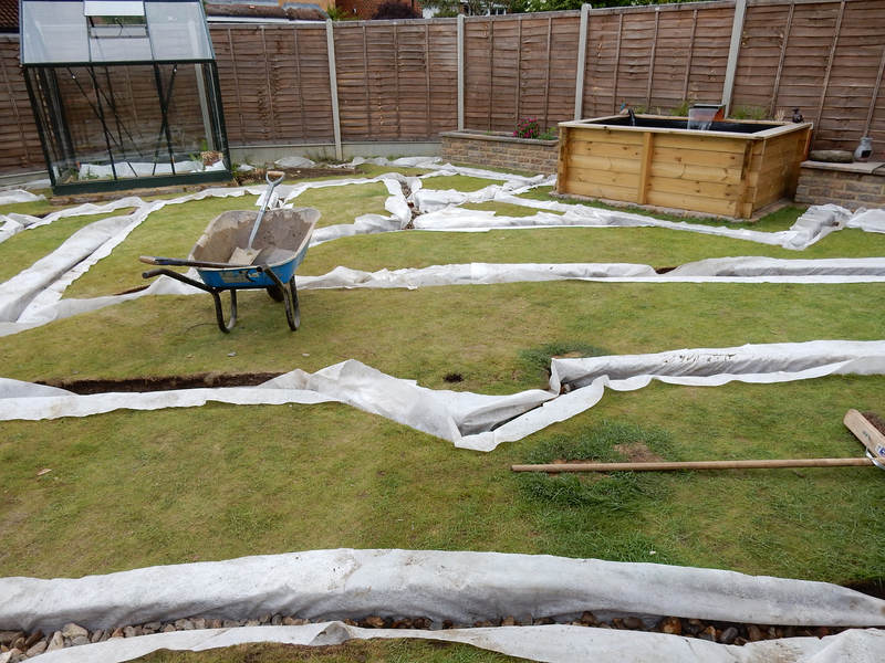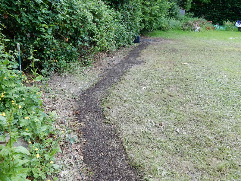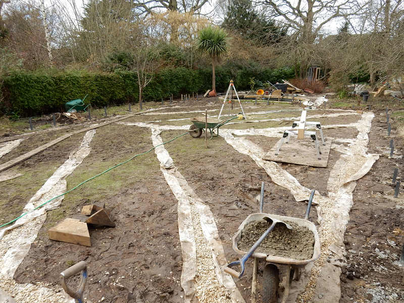 Three main drainage trenches were strategically located within the lawn areas to catch run off from the higher ground beyond the property and diverted to lower areas within the garden away from the house.