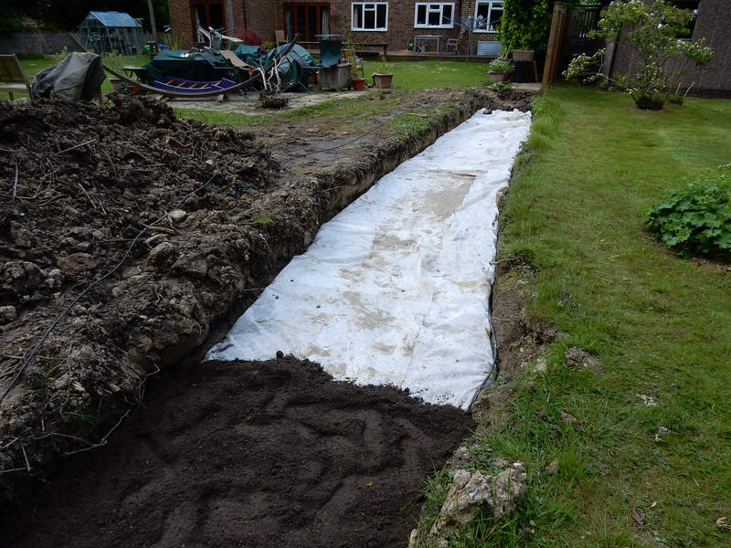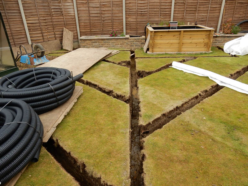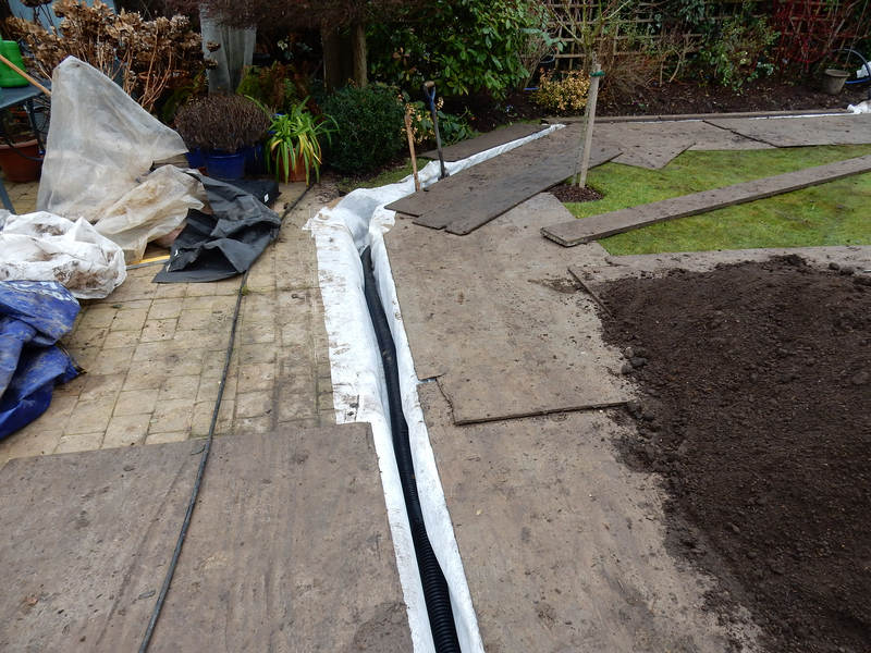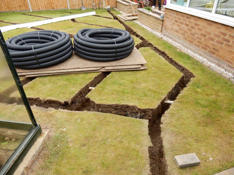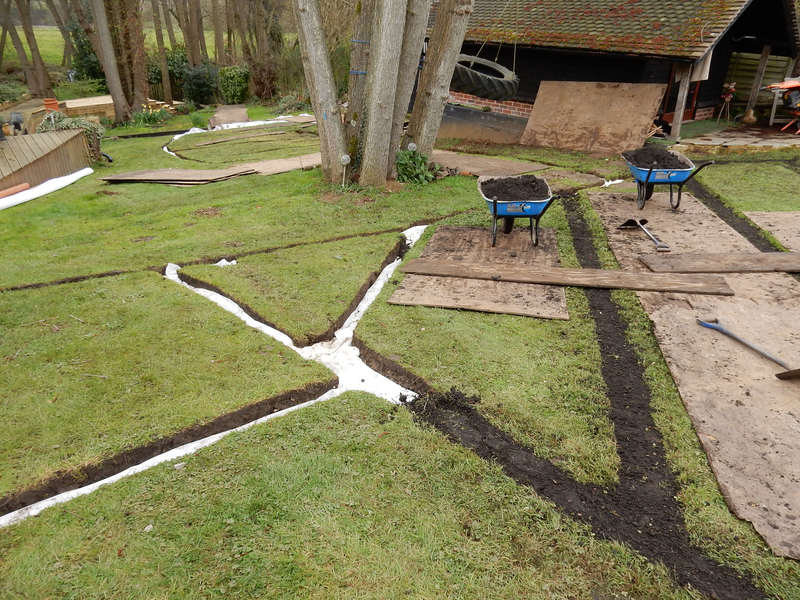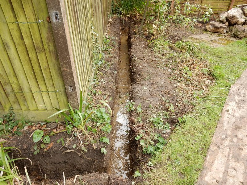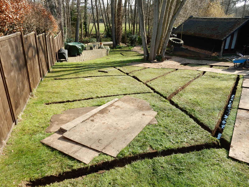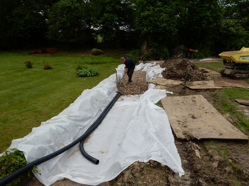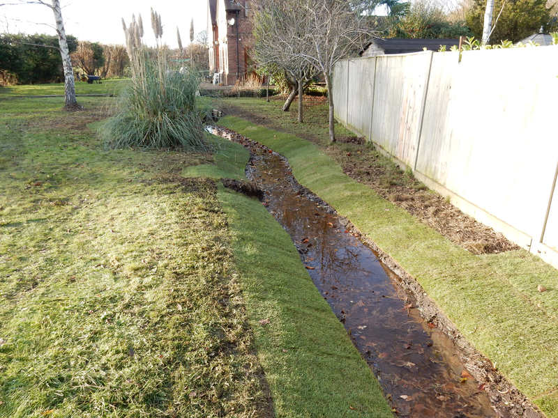 Land drains were also incorporated through the majority of the rest of the garden to alleviate waterlogged lawn areas connected up to a road culvert and field ditches.