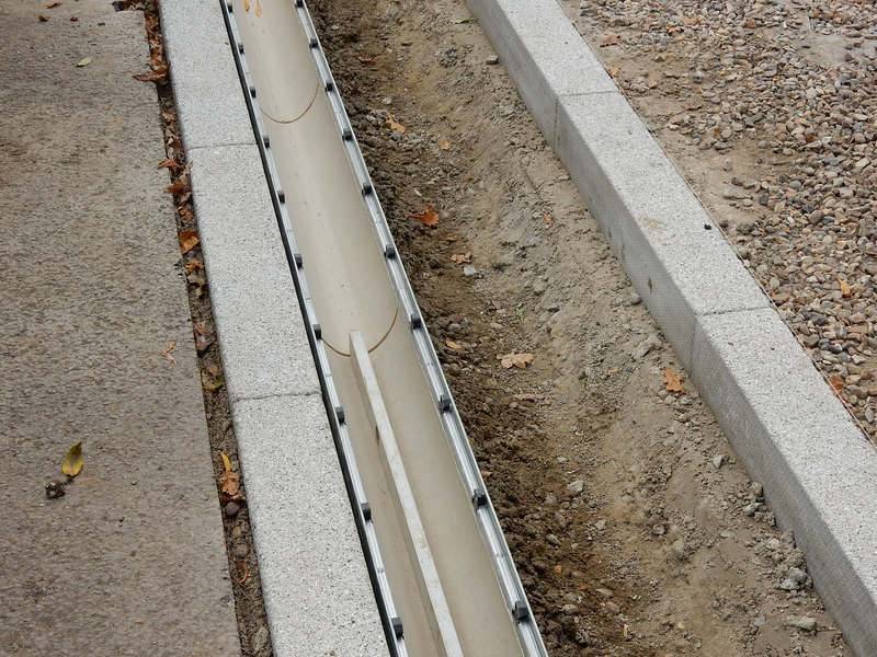 The area was re-designed and landscaped to hide any evidence of the drainage layer.