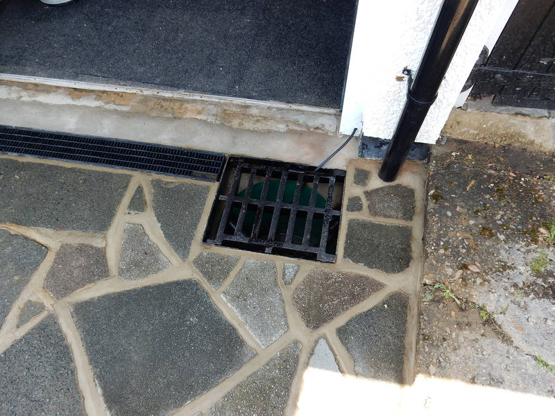 After several severe weather events the client contacted us in relation to garage flooding from excessive run off of water from an adjacent higher road in Farnham, Surrey. The existing surface water drainage infront of the garage was inadequte to cope with the high volumes of rainfall and run off.