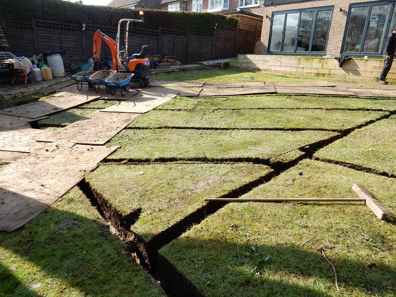 To acheive a new lawn for this garden in Claygate, Surrey drainage issues needed to be dealt with first. The old lawn and garden struggled with poor lawn drainage due to the confined area, poor soil and an in ground flow of water from higher neighbouring properties.