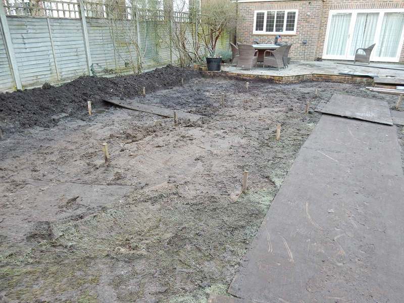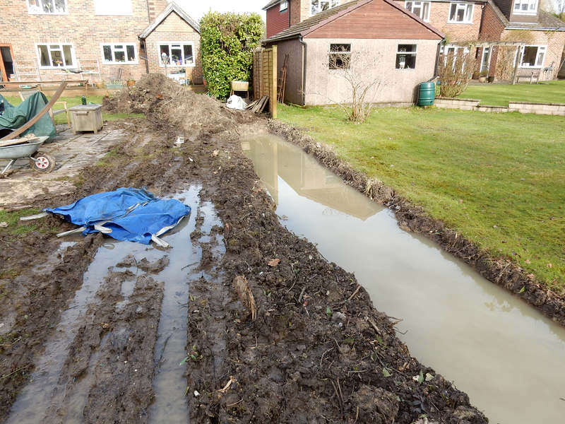 A very long and wet, waterlogged garden in Wormley, Godalming, Surrey, that remained unusable through out the year.