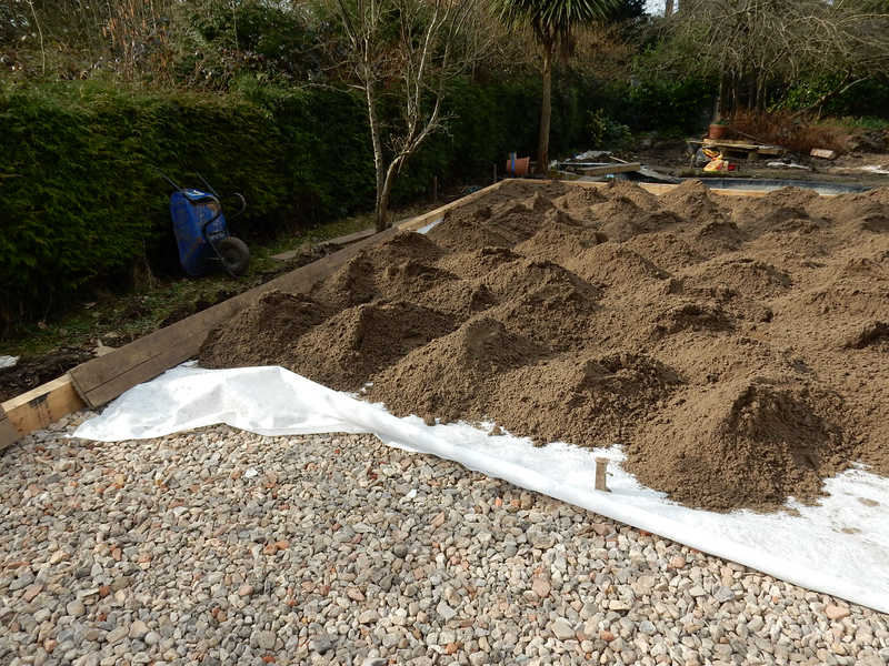 The hedge line was reduced in levels to allow for a drainage layer leading to a sump and pump. Final dispersal was into a perimeter ditch.
