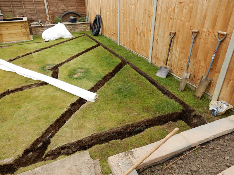 A small confined garden in Cove, Farnborough, Hampshire struggling with very poor drainage and ground conditions preventing the familly from using the garden. A simple drainage scheme was proposed and implemented using a gravity fed system with drainage runs re-seeded.