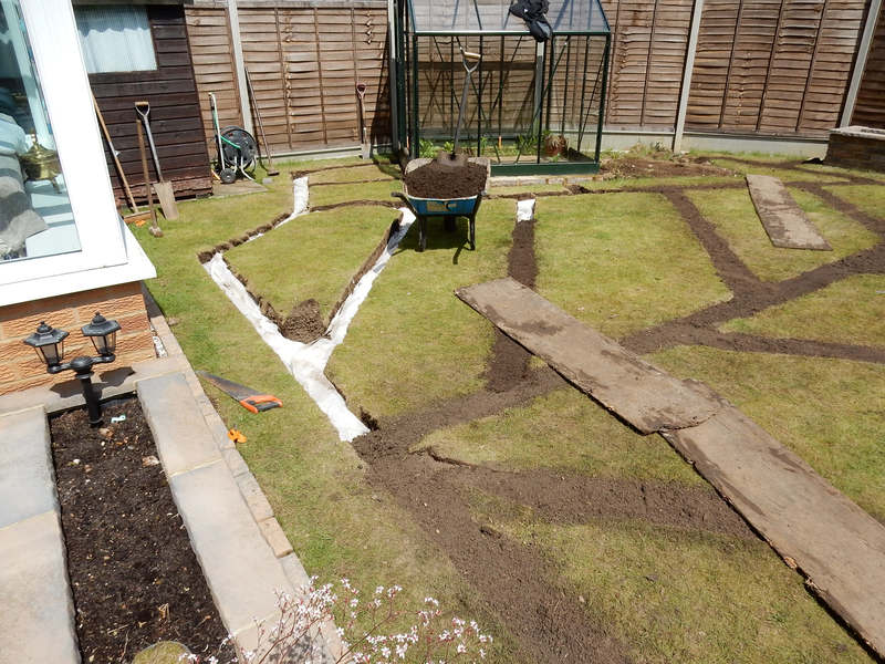 Drainage was installed with the top area joined via land drain pipe to the lowest with a final dispersal point within the lowest areas of the garden. The main problem with this project was access and logistics of exporting and importing of materials.