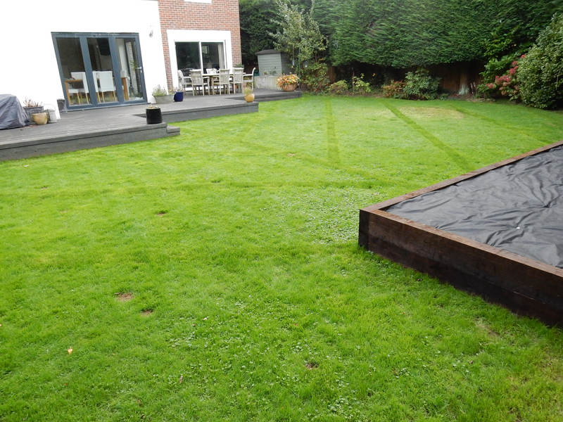 A rear garden lawn in London, NW6. An existing poor soil medium left this rear London lawn water logged and unusable for the all the family. The remit given by the client was to provide a high quality lawn suitable for all the family, useable through out the year.