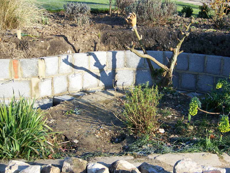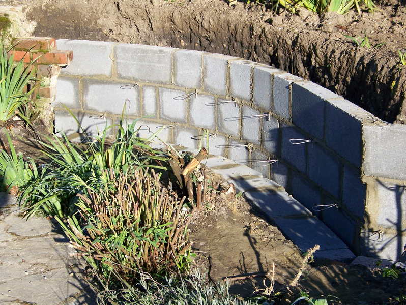 The walling was built to an engineers specification onto structural steel reinforced concrete foundations. The rear of retaining wall was built in concrete filled hollow concrete block work.